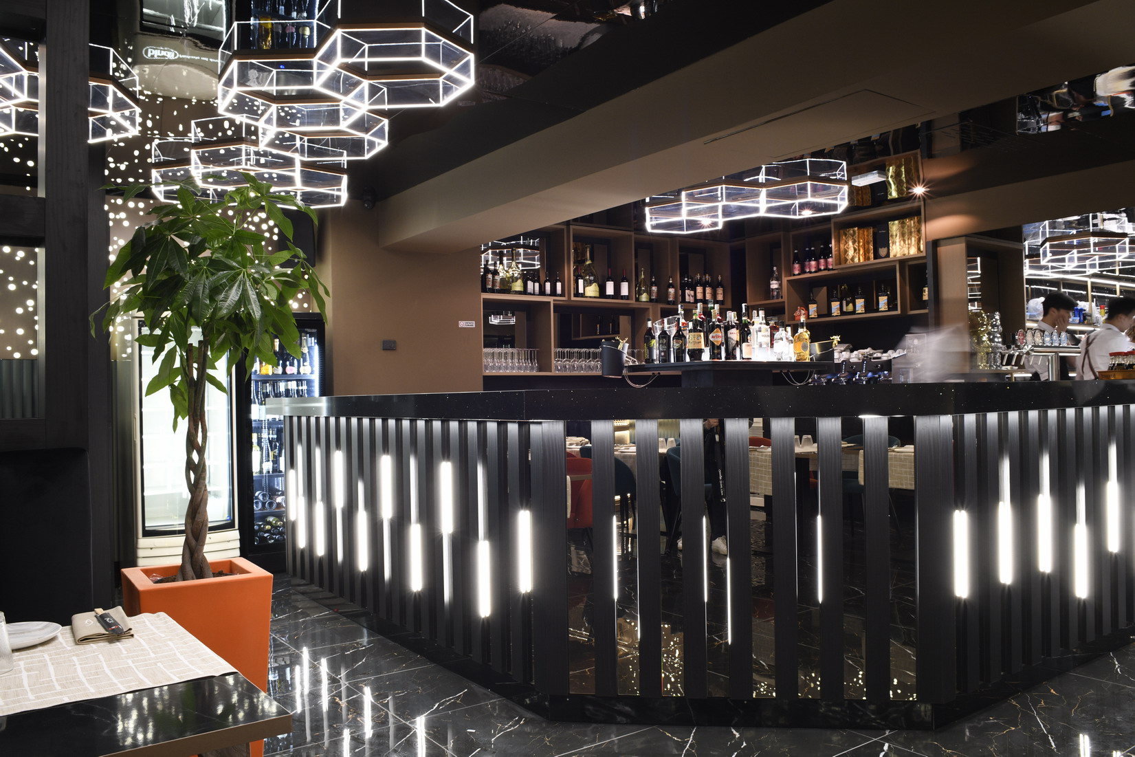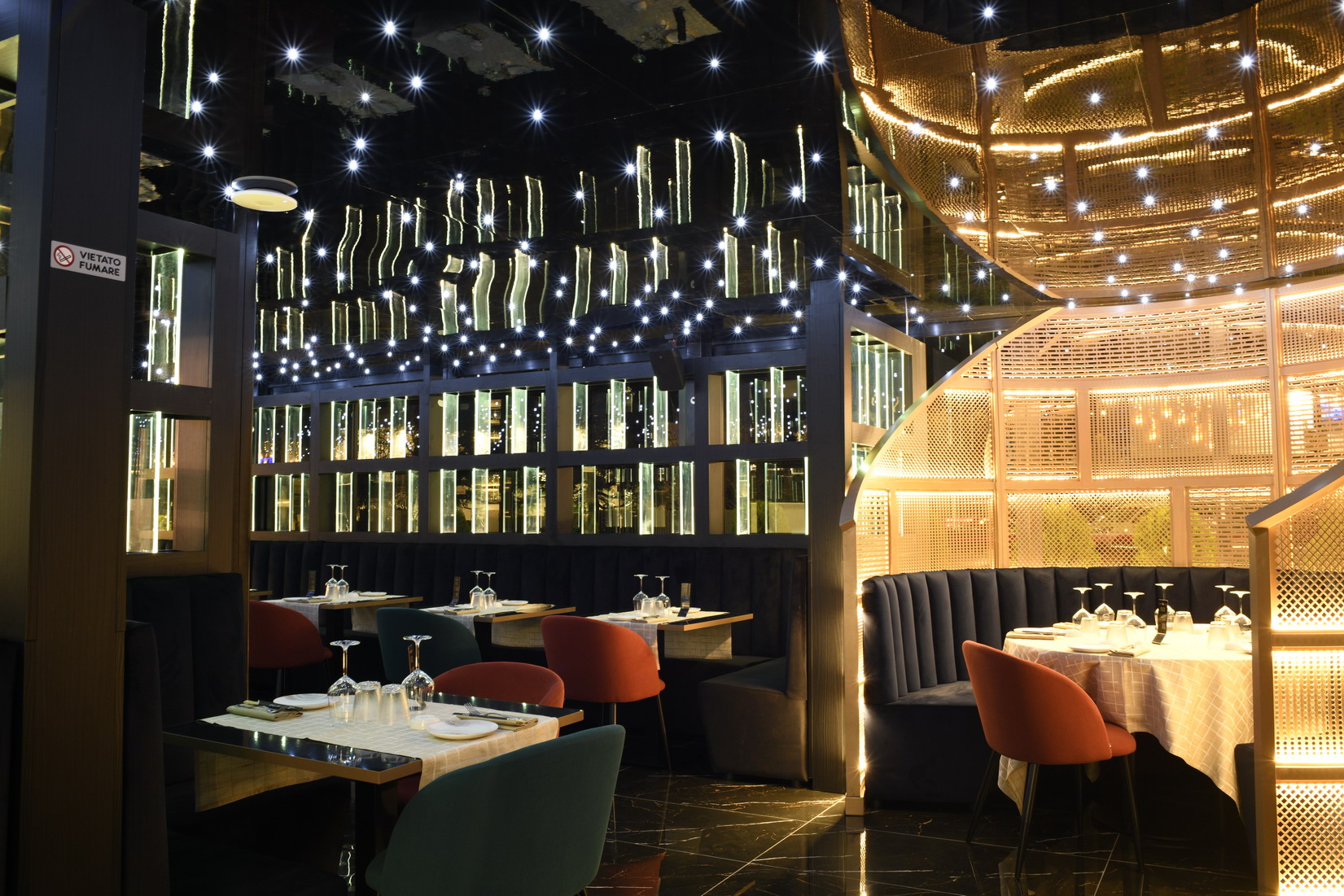 Osserva i dettagli dell’arredamento, dalle eleganti poltrone in velluto alle lampade sospese che creano una luce soffusa e accogliente. Fai un giro intorno ai nostri tavoli impeccabilmente apparecchiati e lasciati trasportare dall’atmosfera unica di Moon Sushi Mozzo in provinvcia di Bergamo, dove il gusto e l’eleganza si fondono armoniosamente.
